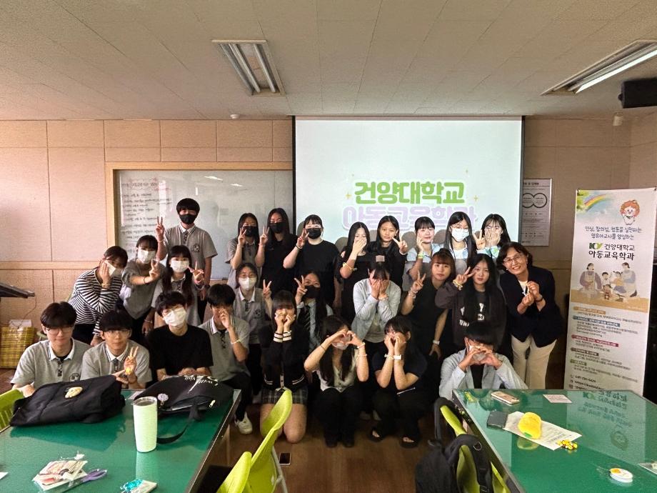 아동교육학과에서는 논산계룡진로직업체험지원센터와 함께 관내 고등학생을 대상으로 하는 <2023 미리 가 보는 대학> 진로체험 프로그램을 운영하고 있습니다. 7.10(월)에 강경고등학교 학생들을 대상으로 <나만의 팔찌 만들기 체험>을 진행하였습니다. 건양대학교 아동교육학과에 많은 관심과 성원을 부탁드립니다. |