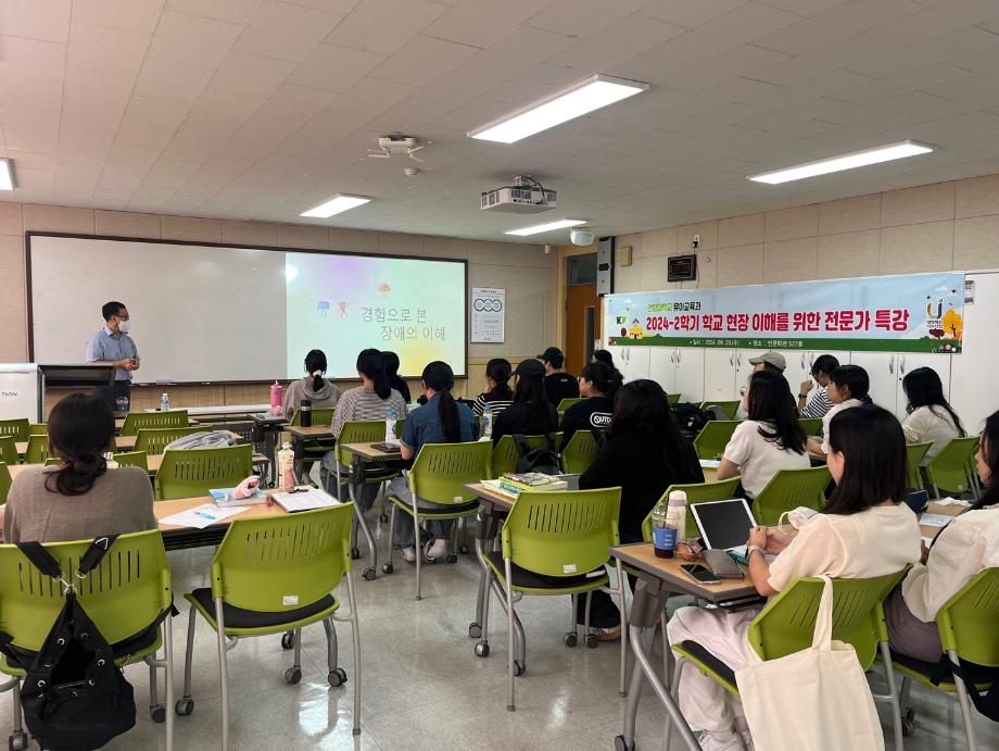 * 일시: 2024년 9월 25일 수요일 * 장소: 인문학관 527호 * 대상: 유아교육과 3학년 * 내용: 경험으로 본 장애의 이해