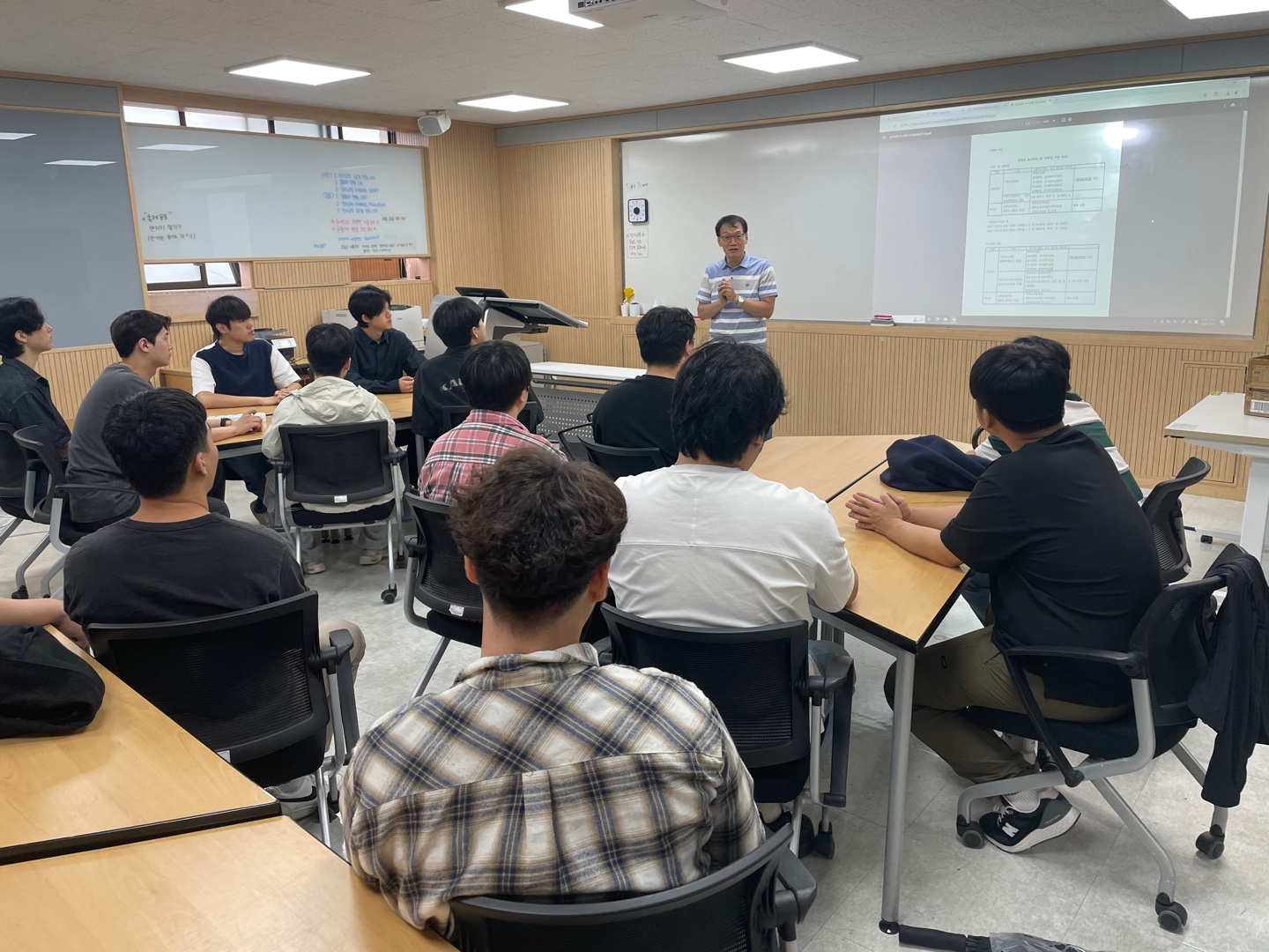 10/1 (화)은 임시공휴일이죠? 오래간만에 휴일인 바로 오늘~ 중등특수교육 전공 남학생들이 모였습니다. 원래 우리학과는 남학생들이 꽤 많거든요. 이번 학기 복학생들도 많고, 또 열심히 공부 중인 재학생들도 모두 모여서 학과 교육과정에 대해 다시 살피고 학교생활에 대한 질의응답도 하는 간담회를 개최하였답니다. 아침부터 내린 비때문에 원래 계획했던 반야산 등반은 하지 못했지만 함께 모여서 선후배들이랑 간단한 몸풀이와 게임도 진행했고, 좀 진지하게 학교생활을 충실히 하는 노하우도 공유했답니다. 물론 마치고는 고기 맛나게 먹었습니다. 우리 좀 즐거워 보이죠?