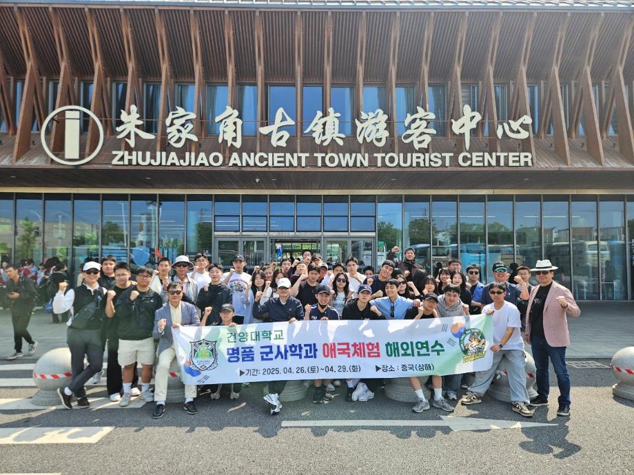 [2025학년도 군사학과 애국체험 해외연수] - 일 정 : 2025.04.26.(토) ~ 04.29.(화) [3박 4일] - 장 소 : 중국(상해) - 인 원 : 1학년 전원 [39명] - 인솔교수 : 군사학과장 포함 6명 (지효근, 신치범, 홍준기, 김충관, 박헌규, 김태진) - 목 적 ① 해외 각 국에 흩어져 있는 대한민국 역사의 흔적들을 직접 찾아가 체험 ② 글로컬 성장을 위한 역량 강화 차원에서 상해 복단대학교 현장 방문 및 체험 ③ 애국체험을 통한 역사의식 및 애국심 제고