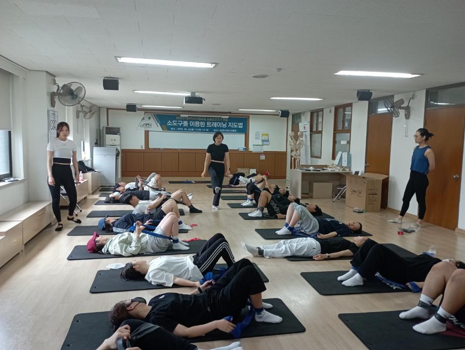 소도구(매트, 폼롤러, 밴드 등)를 이용한 트레이닝 지도법 특강을 진행하였습니다.