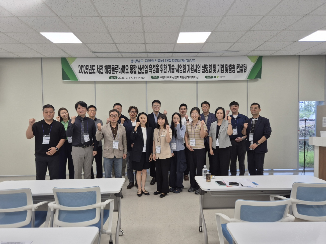 건양대학교(총장 김용하)와 서천군(군수 김기웅)이 지역 해양바이오 기업 경쟁력 강화와 성장을 지원한다. 지난 9월 17일 오후 2시, 서천 해양바이오 산업화 지원센터에서 '2025년도 서천 해양블루바이오 융합 신산업 육성을 위한 기술 및 사업화 지원사업 설명회 및 기업 맞춤형 컨설팅'을 성공적으로 개최했다.