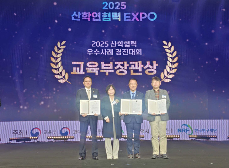 홍영기 건양대KY라이즈사업단장, 대외협력부총장(오른쪽 두번째)이 2025년 10월 29일 대구에서 열린 '2025 산악협력 엑스포'에서 교육부장관상을 수상.jpg