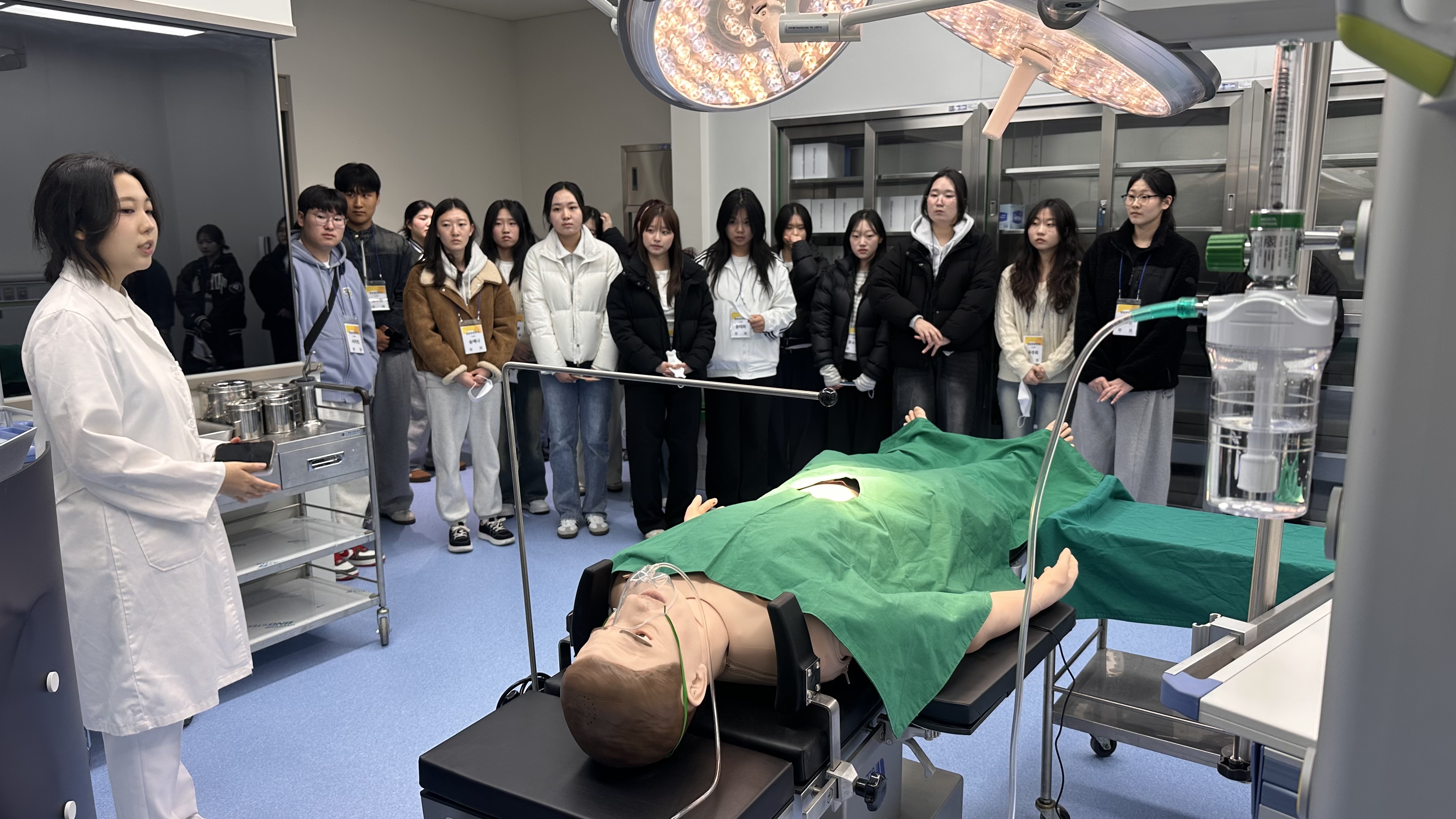 의료보건계열 신입생은 건양대병원 투어를 통해 미래 직장을 미리 체험하기도 했다.