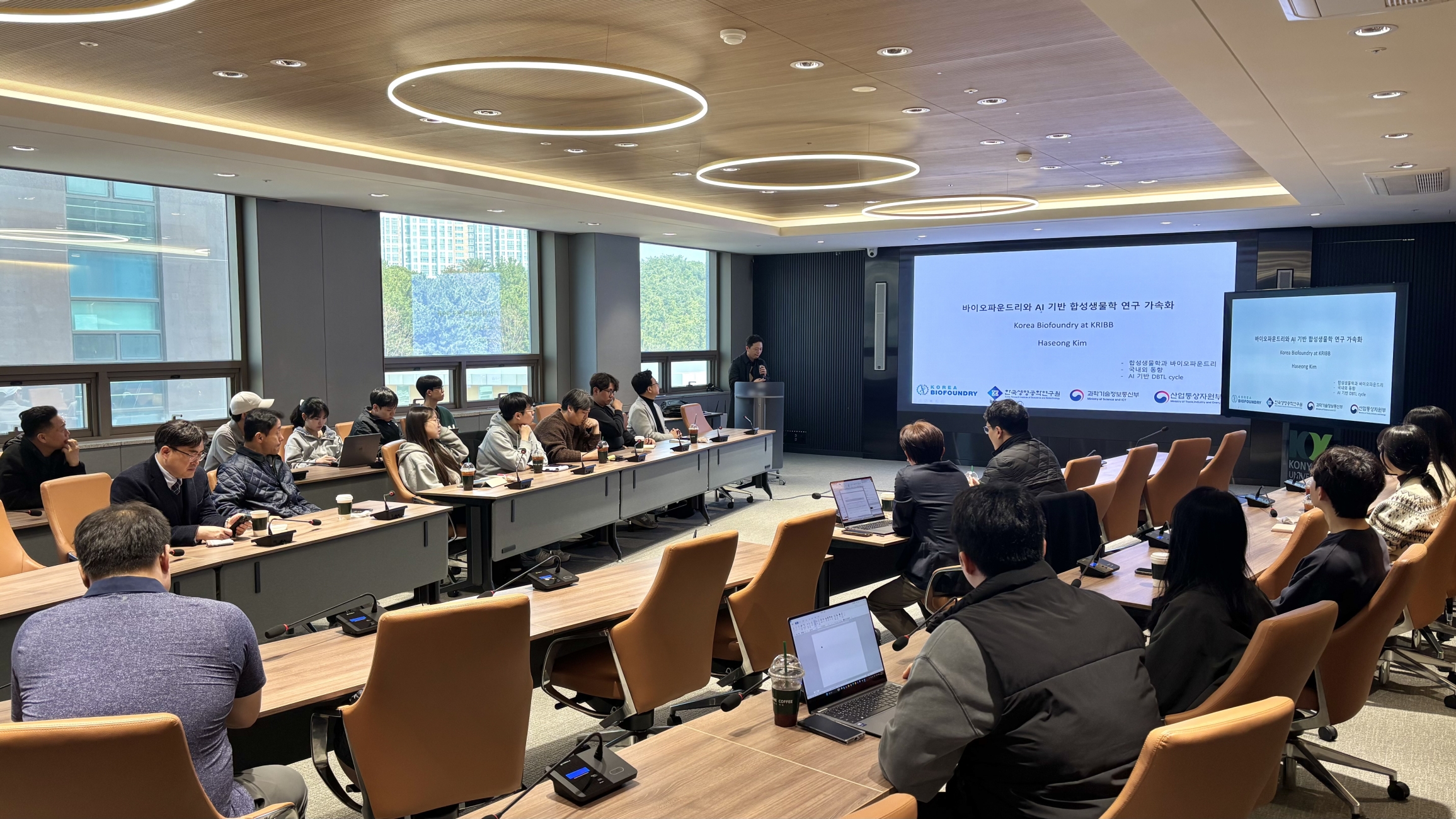 한국생명공학연구원 김하성 박사는 ‘바이오파운드리 현황과 트렌드, 교육과정 수요’를 주제로 특강을 진행했으며, AI 기반 신약 개발과 바이오 데이터 분석의 중요성을 강조했다. 간담회에서는 AI 기반 바이오 데이터 분석, 머신러닝 신약개발, 디지털 헬스케어, 자동화 연구 등 인공지능 융합교육 과정을 강화하고, 프로젝트 기반 학습(PBL)과 산학연 연구 참여 확대 방안이 제안되었다.