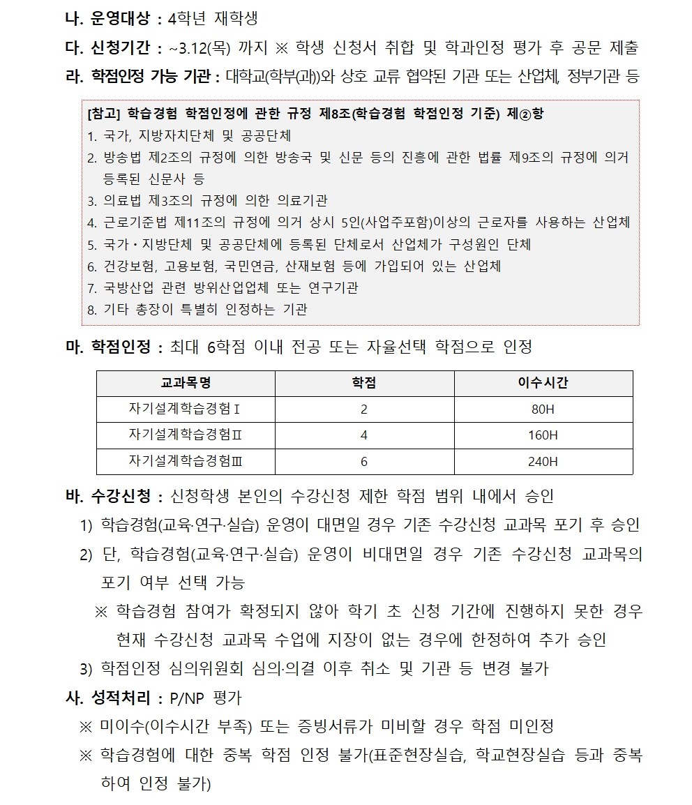 | 제목 | 2026-1학기 학습경험 학점인정제 운영 안내 | ||||