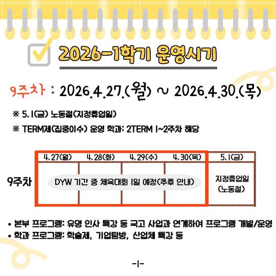 | 제목 | 2026학년도 1학기 DYW(Design Your Week) 운영 안내 | ||||