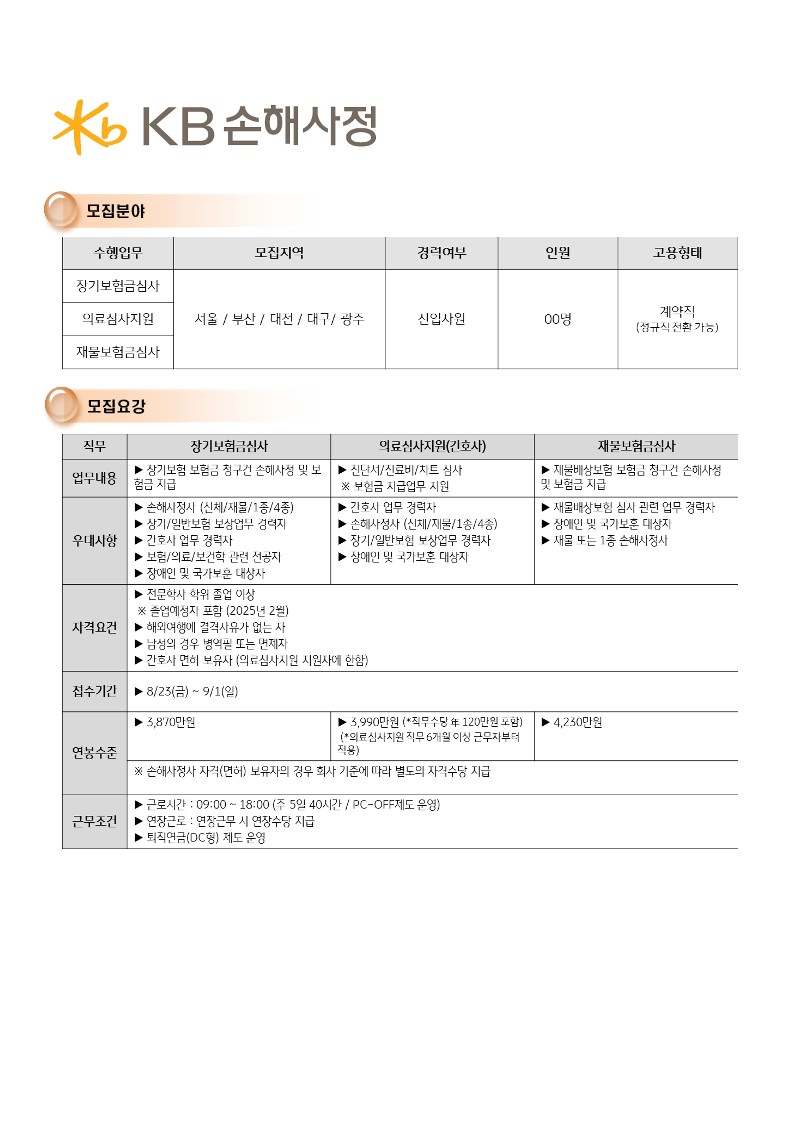 KB손해사정(주) 입사지원 홍보자료 글의 상세내용
