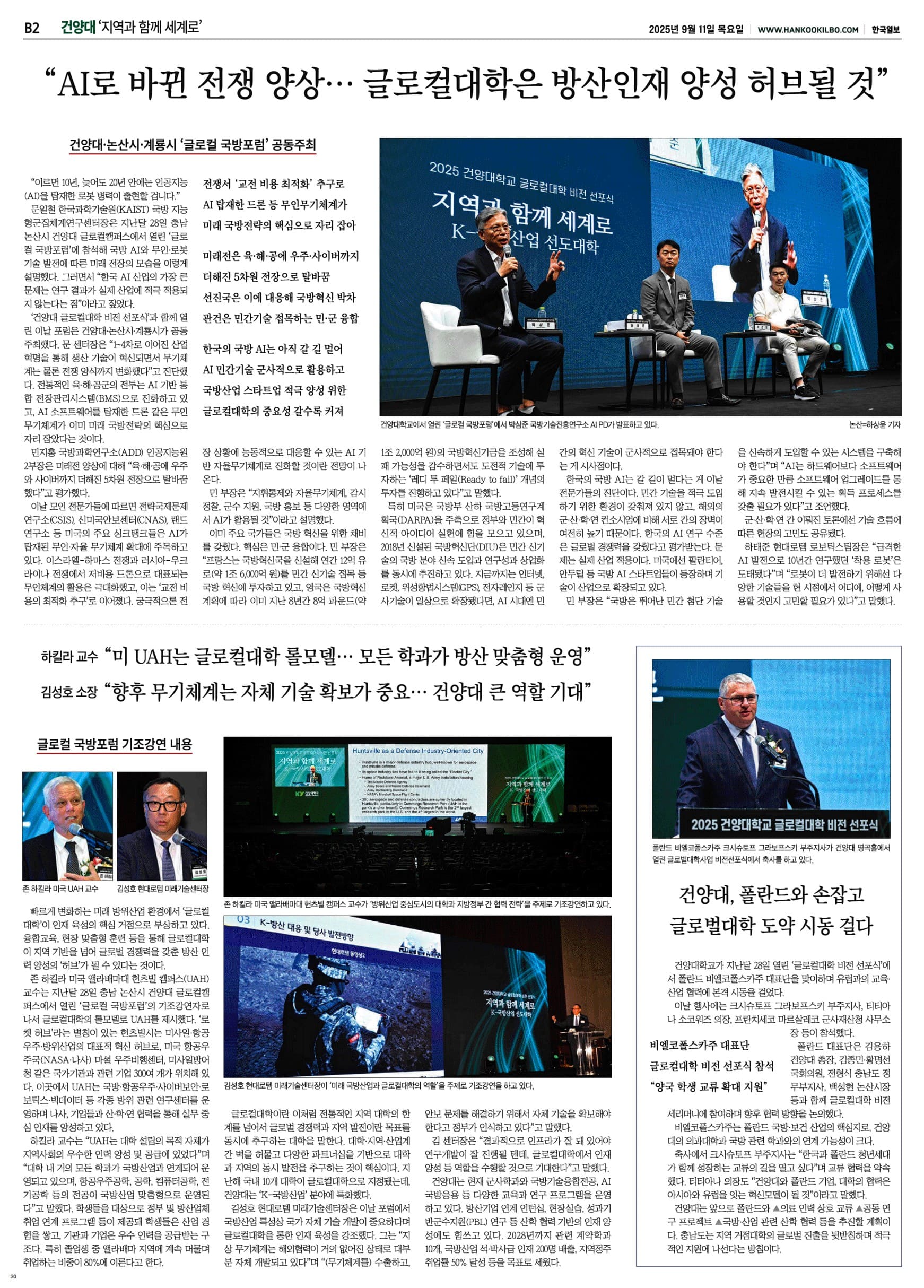 제목 | AI로 바뀐 전쟁 양상...글로컬대학은 방산인재 양성 허브될 것(2025.09.11.) | ||||